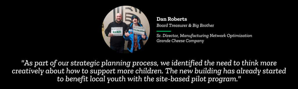 - We were able to launch a brand-new site-based mentoring program at our new building last fall. Employees from Grande Cheese Company meet with their Littles at the BBBS office every other Wednesday.