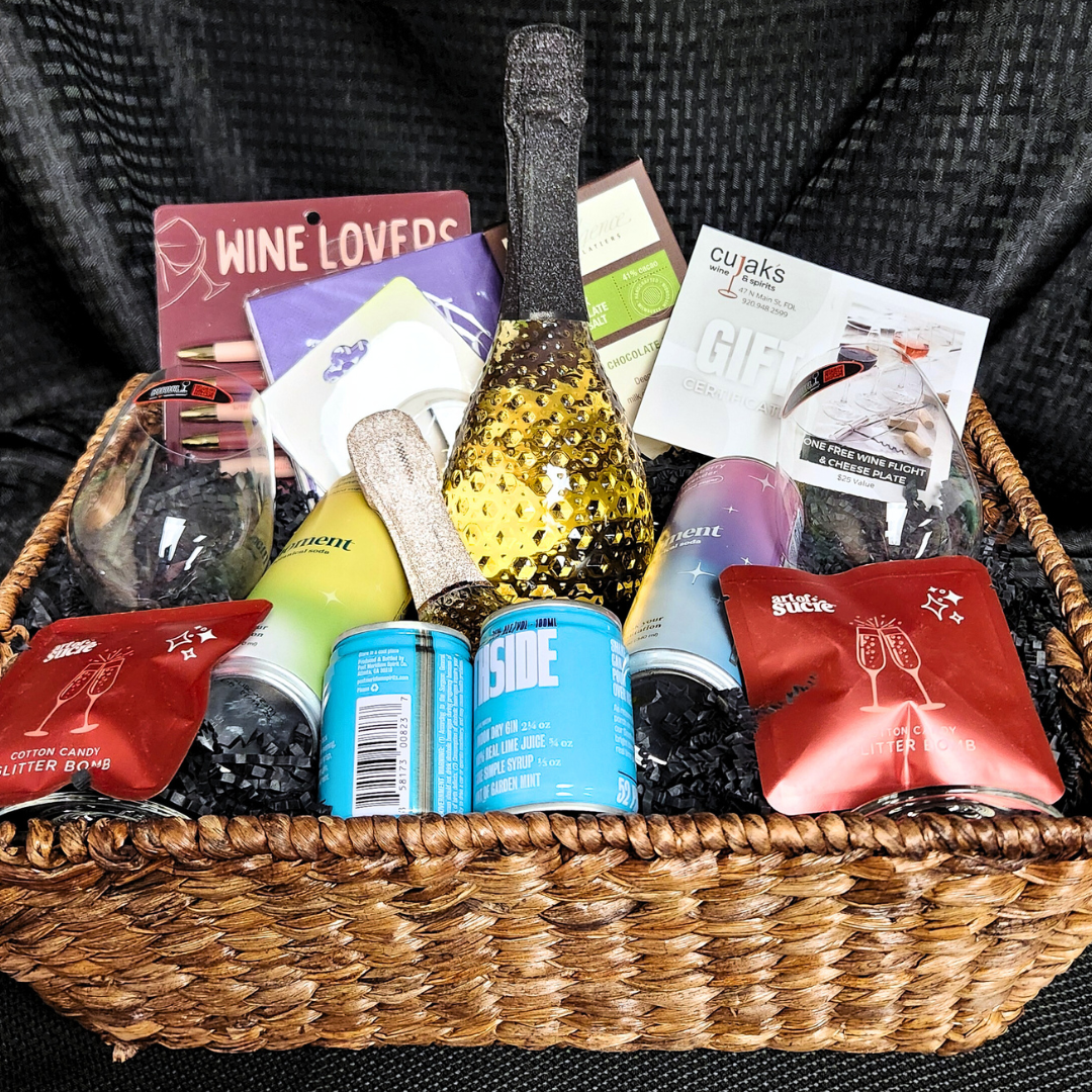 This wine lovers basket is perfect for wine enthusiasts or anyone who enjoys to sip and savor! Donated by Cujak’s Wine & Spirits it includes Pizzolato Moscato wine, Pizzolato Rose wine, 2-small cans Southside London dry gin, 1-can lemon turmeric Moment botanical soda, 1-can blackberry lavender Moment botanical soda, 2-Riedel wine glasses, 2-Art of Sucre cotton candy glitter bombs, True 6-blade foil cutter, Indulgence Chocolatiers fine chocolate bar, wine napkins, Wine Lovers pens, & a $25.00 gift card to Cujak’s Wine & Spirits. Bring on the bubbly!