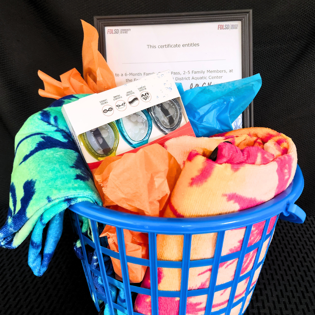 Enjoy hot summer days by cooling off at the Fond du Lac School District Aquatic Center. A winning bid on this item includes a 6-Month Family Swim Pass for 2-5 family members, 2 beach towels, and 3 water goggles.