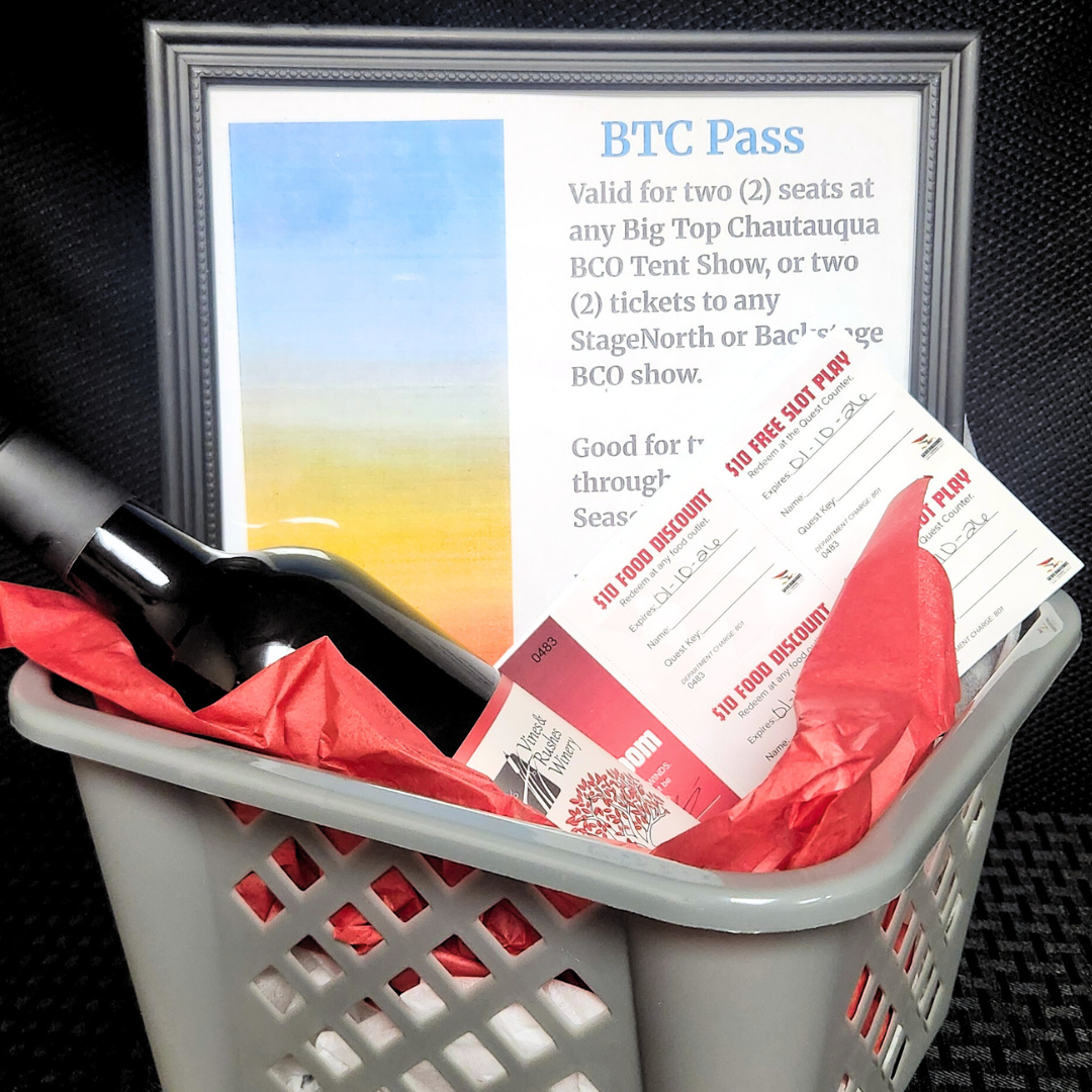 Donated by the Sevenwinds Casino Lodge & Conference Center, Big Top Chautauqua, and Vines & Rushes Winery.